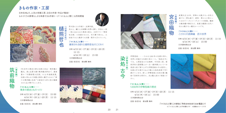 恒例お手入れ・お直しクリニック、和の体験講座、全国有名工房の作り手さんから直接お話を聞ける人気企画も大充実。
